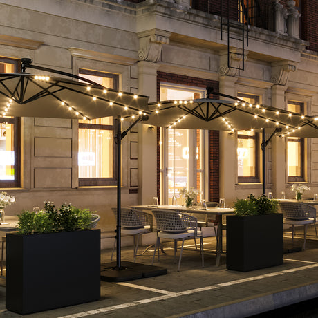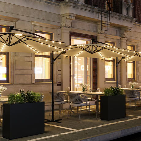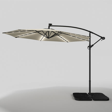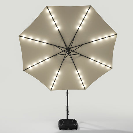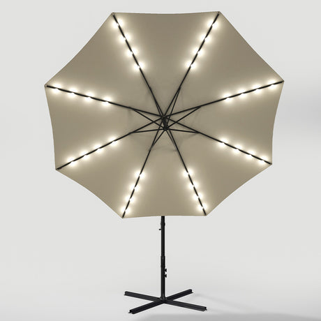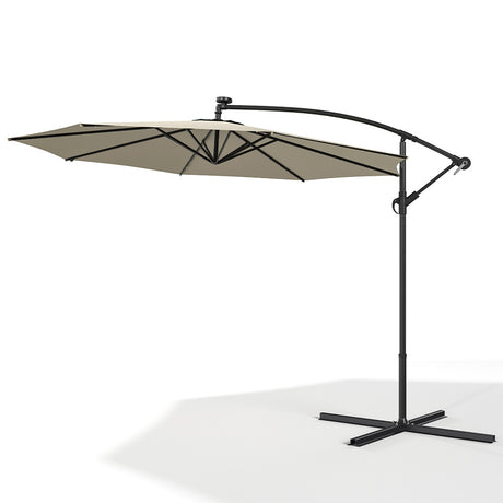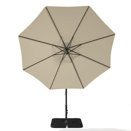 3M Large Garden Hanging LED Parasol Cantilever Sun Shade Banana Umbrella with Cross Base, Beige