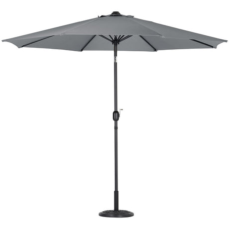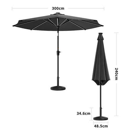 3M Dark Grey Garden LED Light Parasol Outdoor Umbrella with Cross Base