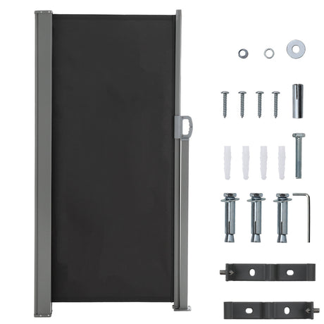 300x120CM Retractable Side Awning Garden Privacy Screen Windbreak Sunshade, Black