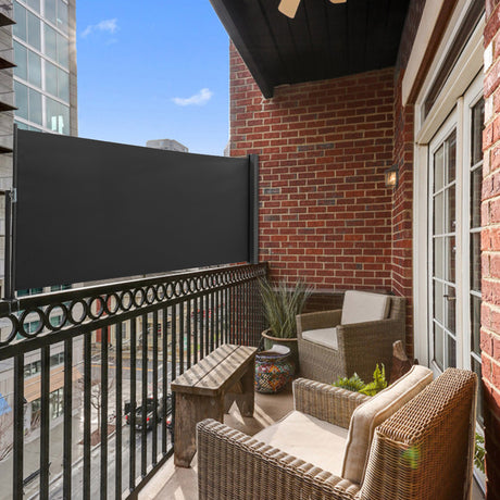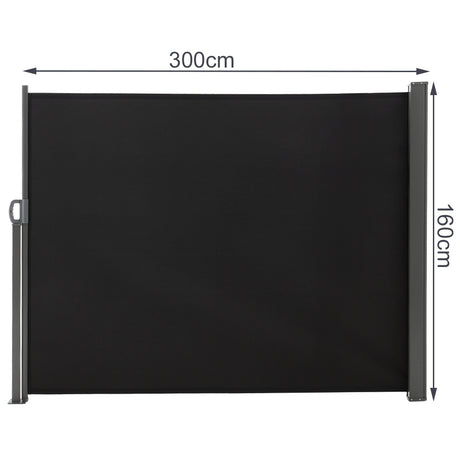 300x140CM Retractable Side Awning Garden Privacy Screen Windbreak Sunshade, Black