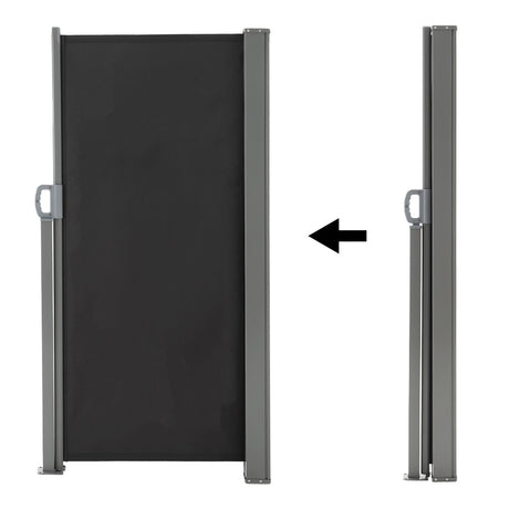 300x100CM Retractable Side Awning Garden Privacy Screen Windbreak Sunshade Black