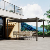 Hosting hearty backyard BBQs or dinner parties and transforming your space into an inviting haven become so much easier with this Aluminum Patio Pergola. Crafted with a rust-resistant, powder-coated aluminum frame, the pergola boasts a reinforced structure to offer durability that can withstand the test of time. Comes with a UV-protected, windproof, and watertight canopy, it provides optimal shade against the scorching sun. What is more, the canopy is retractable with a drawstring, allowing you to bask in the perfect summer ambiance.