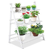 3 Tier Ladder Foldable Plant Pot Stand, White
