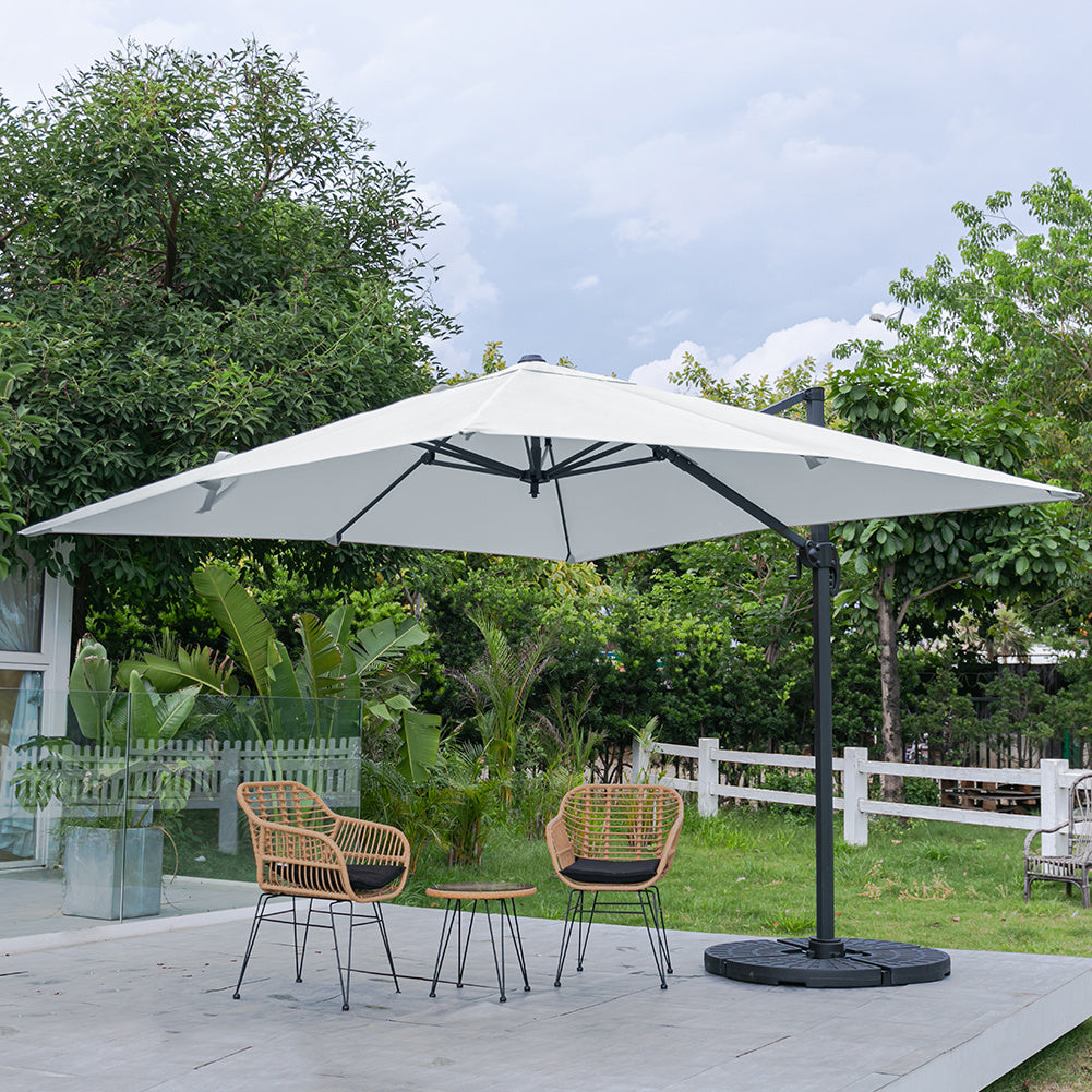 * Diameter 3m hanging garden parasol hangs over your dining set or garden set.