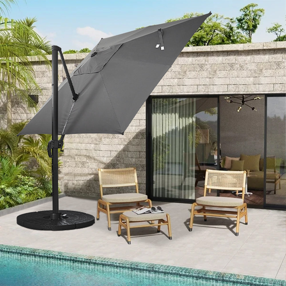 Dark Grey 2.5M Garden Roma Tilting Cantilever Parasol With Fan shaped Base