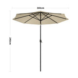 3M Large Garden LED Parasol Outdoor Beach Umbrella with Light Sun Shade Crank Tilt No Base, Beige