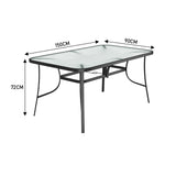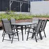 Set of 7 Garden 150CM Ripple Glass Rectangle Umbrella Table and Folding Chairs Set, Black