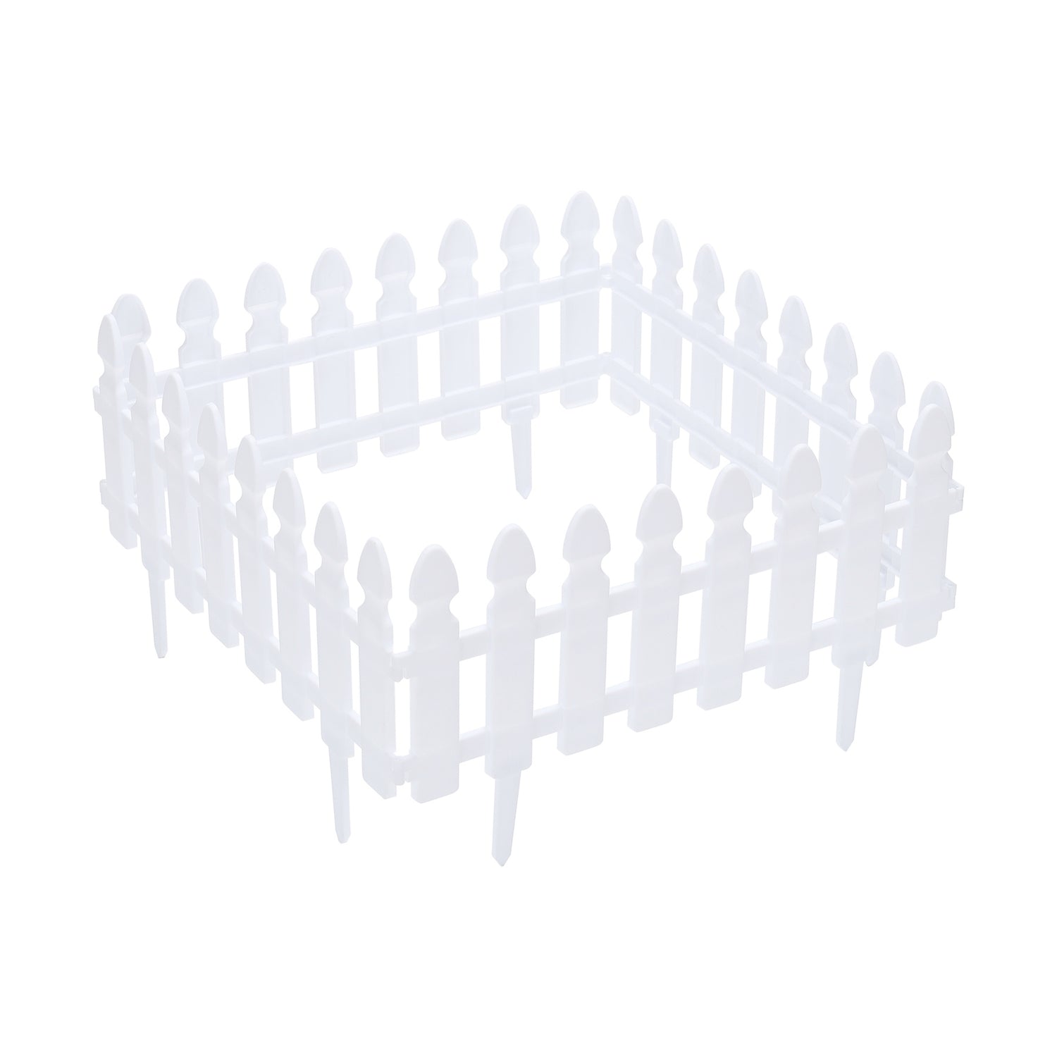 White Set of 4 Plastic Picket Garden Fence Path Border