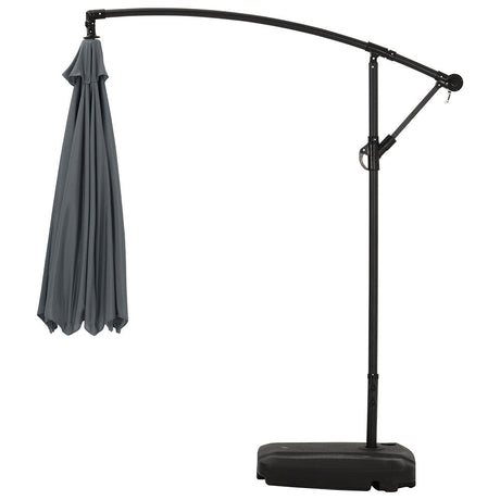 3M Banana Parasol Patio Umbrella Sun Shade Shelter with Fanshaped Base, Dark Grey
