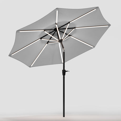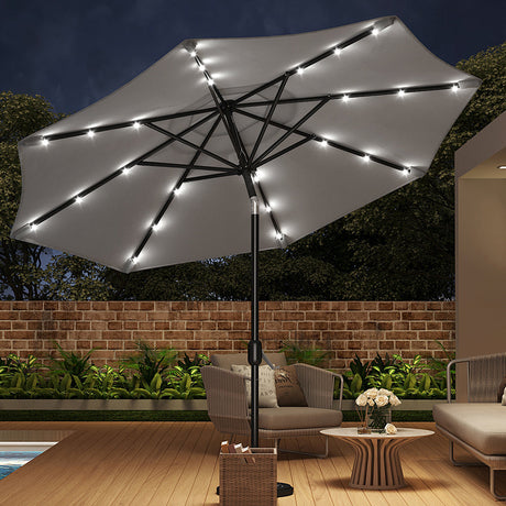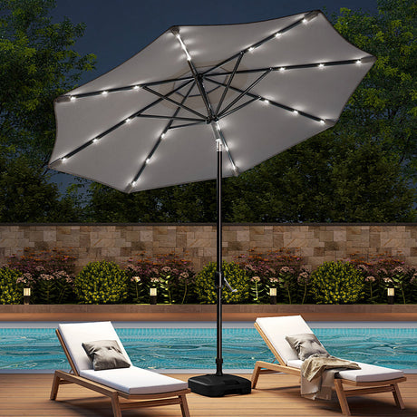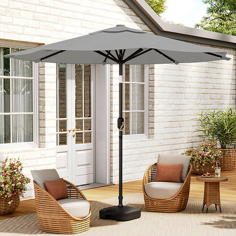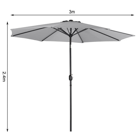 3M Parasol Umbrella Patio Sun Shade Crank Tilt with Round Base, Light Grey