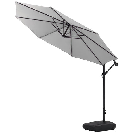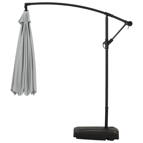 3M Banana Parasol Patio Umbrella Sun Shade Shelter with Fanshaped Base, Light Grey