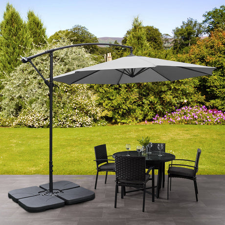 3M Large Garden Hanging Parasol Cantilever Sun Shade Patio Banana Umbrella No Base Light Grey
