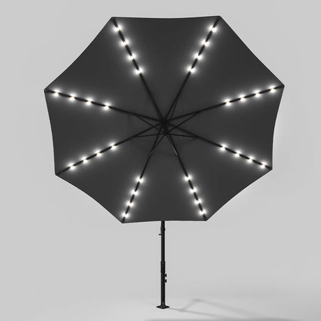 3M Large Garden Hanging LED Parasol Cantilever Sun Shade Banana Umbrella No Base, Dark Grey