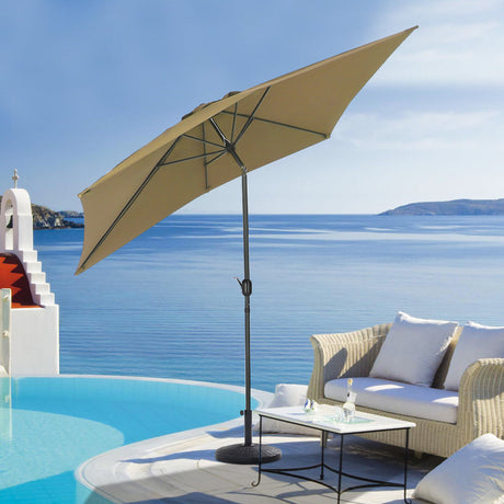 2x3M Parasol Umbrella Patio Sun Shade Crank Tilt with Round Base, Taupe
