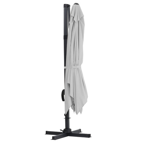 3M Large Garden Roma Tilting Aluminium Cantilever Parasol With Fanshaped Base, Light Grey