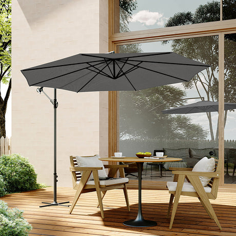 3M Garden Hanging Parasol Cantilever Sun Shade Patio Banana Umbrella, Dark Grey