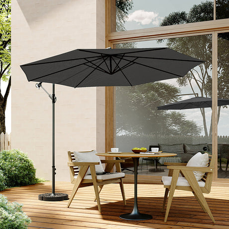 3M Large Garden Hanging Parasol Cantilever Sun Shade Patio Banana Umbrella No Base Dark Grey