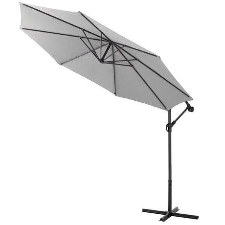 Garden 3M Light Grey Banana Parasol Cantilever Hanging Sun Shade Umbrella Shelter with Cross Base