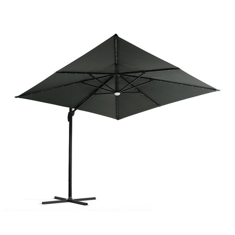 3M Dark Grey Roma Tilting Aluminium Square Cantilever Parasol with Solar Powered LED Lights