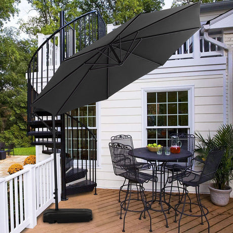 3M Banana Parasol Patio Umbrella Sun Shade Shelter with Fanshaped Base, Black