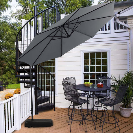 Garden 3M Dark Grey Banana Parasol Cantilever Hanging Sun Shade Umbrella Shelter with Square Base