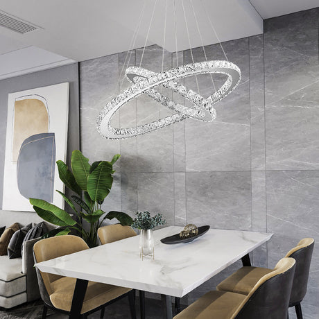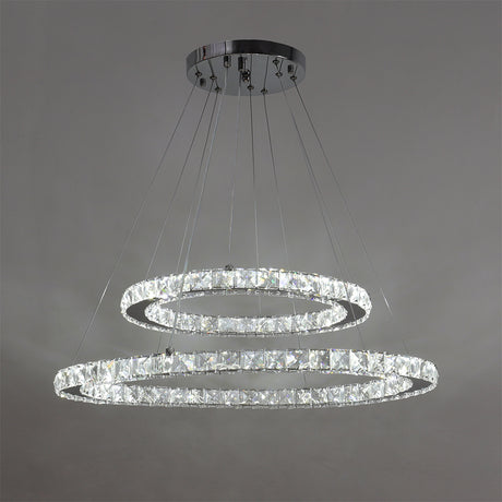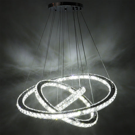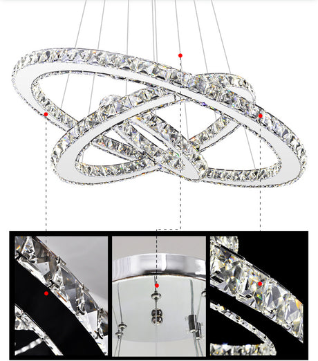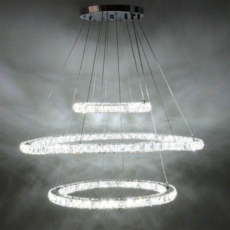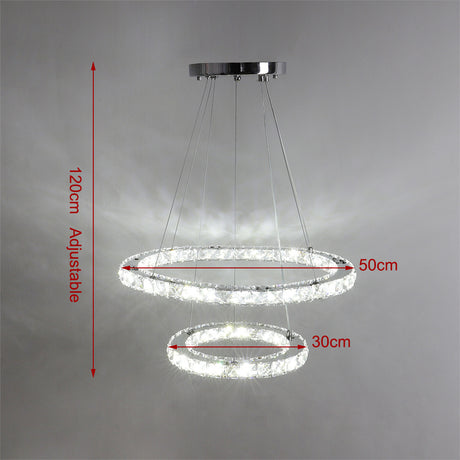 White LED Chandelier Lamp Wire Pendant Crystal Ceiling Lights, 30+50+70CM