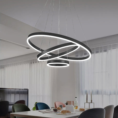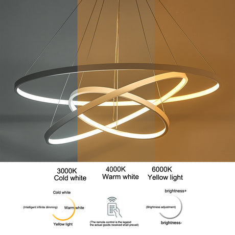 Modern 3 Ring Aluminum Round Hanging LED Pendant Light Stepless Dimmable