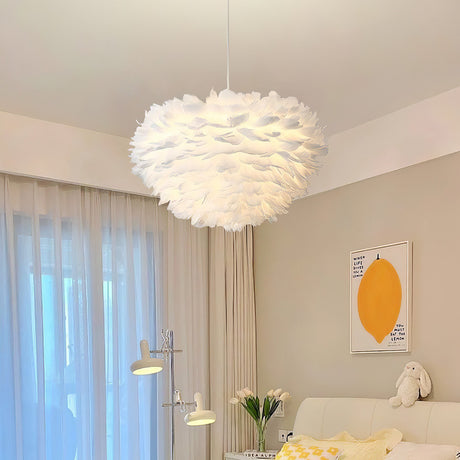 White 50x120cm Chic Feather 3 Light Pendant Light