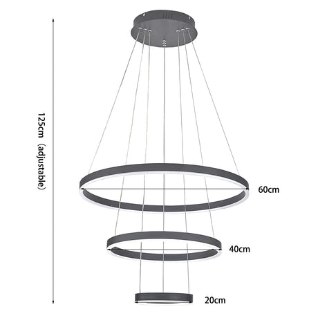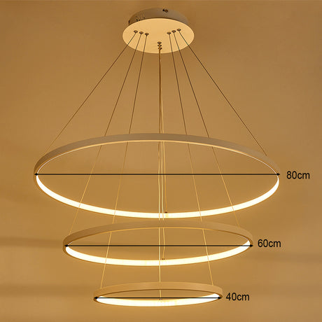 Modern 3 Ring Aluminum Round Hanging LED Pendant White Light