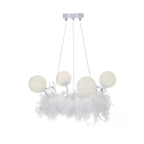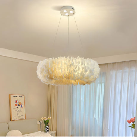 White 50x120cm Chic Feather 6 Light Pendant Light