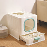 Blue Enclosed Folding Cat Litter Box Toilet with Scoop