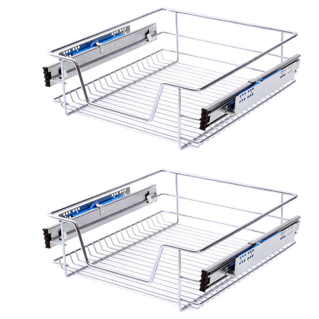 Set of 2 Pull Out Wire Basket Kitchen Cabinet Larder Organizer Cupboard Drawer, 50CM