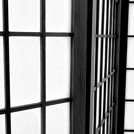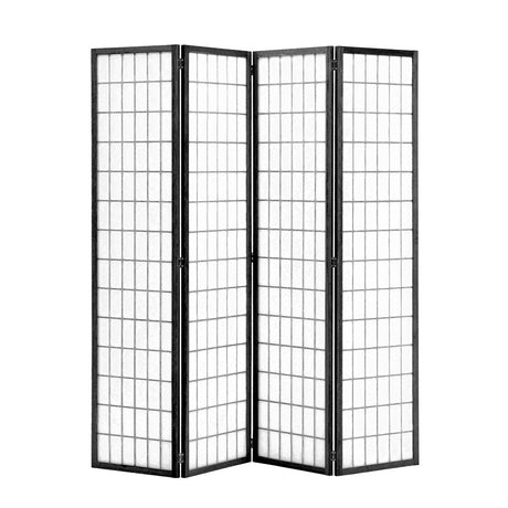 Black 4 Panel Solid Wood Folding Room Divider Privacy Screen