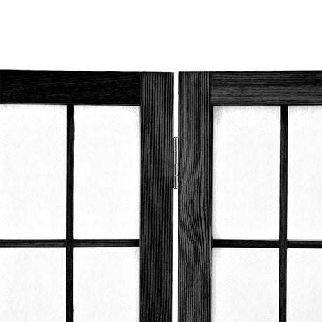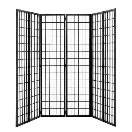 Black 6 Panel Solid Wood Folding Room Divider Privacy Screen