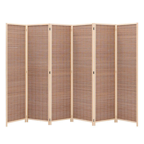 Brown Bamboo Woven 6 Panel Folding Room Divider Privacy Screen