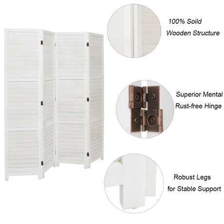 Folding Room Divider Privacy Separator Screen White 4 Panel