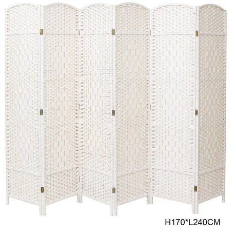 White Solid Weave Wicker Wood Room Divider 6 Panel