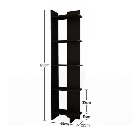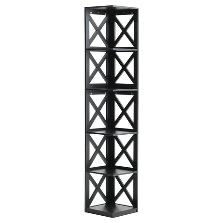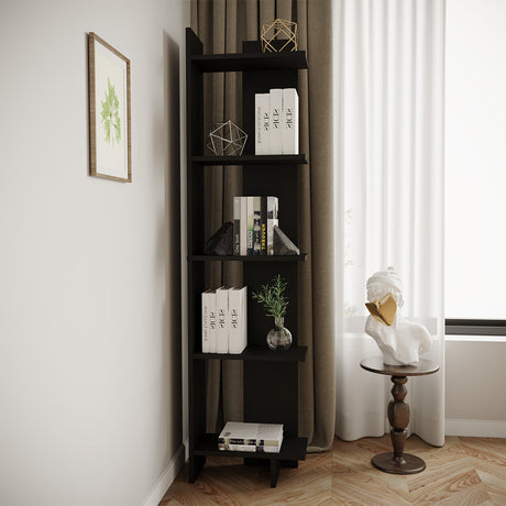 5 Tier Modern Wood Corner Standing Shelf for Living Room, Black