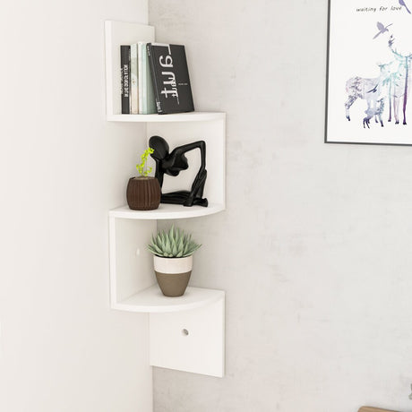 3 Tier Floating Wall Corner Shelves Display Storage Rack, White