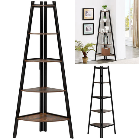 5 Tier Corner Storage Bookshelf Shelving Unit Black