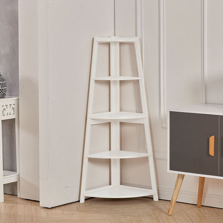 White 5 Tier Ladder Shaped Corner Shelf Rack Bookcase