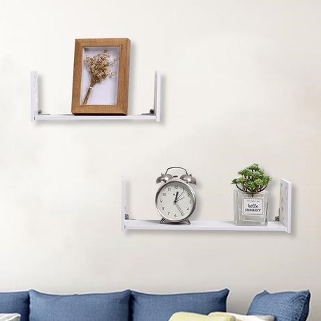 2 Tier Floating Wall Corner Shelves Display Storage Rack, White
