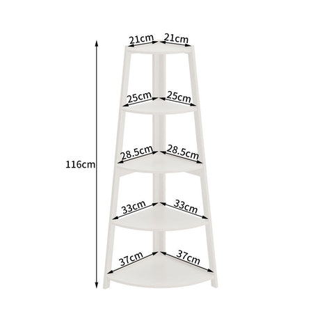 5 Tier Corner Storage Bookshelf Shelving Unit White