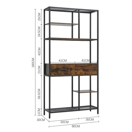 Brown 5 Tier Industrial Shelving Unit Bookcase Display Shelf