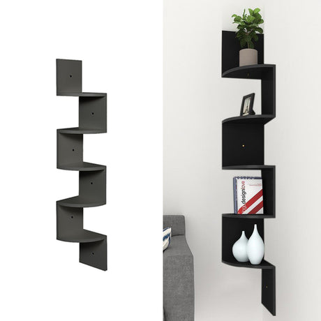 5 Tier Floating Wall Corner Shelves Display Storage Rack, Black
