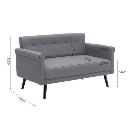 Dark Grey 2 Seater Sofa Upholstered Loveseat with Rolled Arms