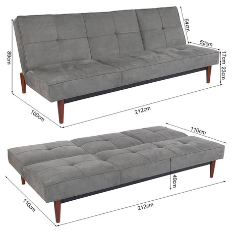 Grey Faux Suede 3 Seater Upholstered Sofa Bed