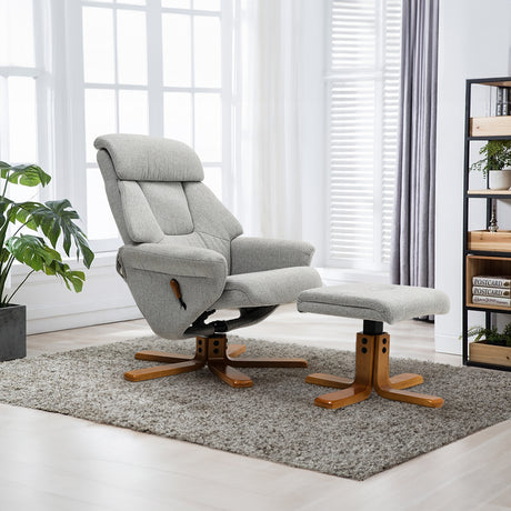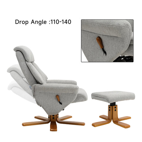 Grey PU Adjustable Tilt Swivel Faux Leather Recliner Chair With Ottoman