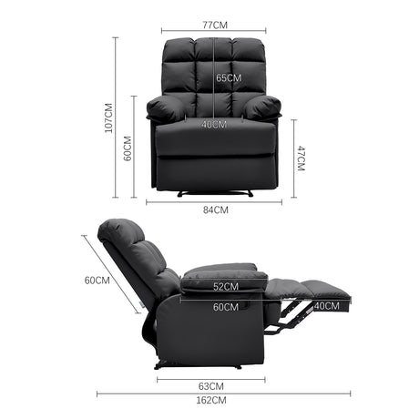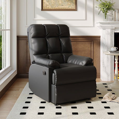 Luxurious Faux Leather Recliner Chair Plush Foam Tufted Back Wide Armrests