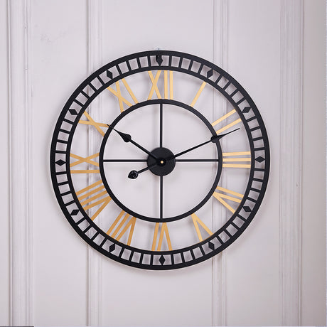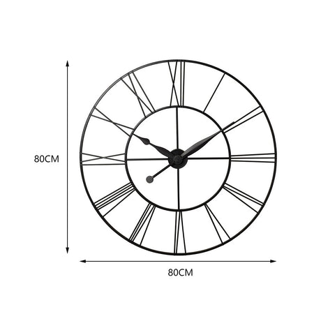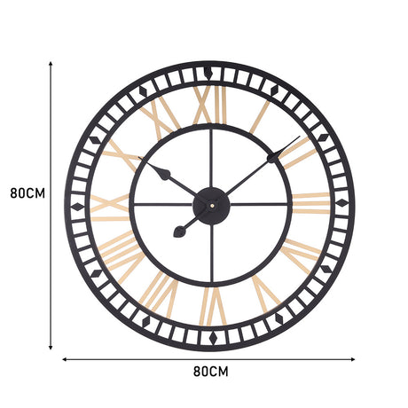 80CM Roman Numerals Metal Wall Clock, Black and Golden